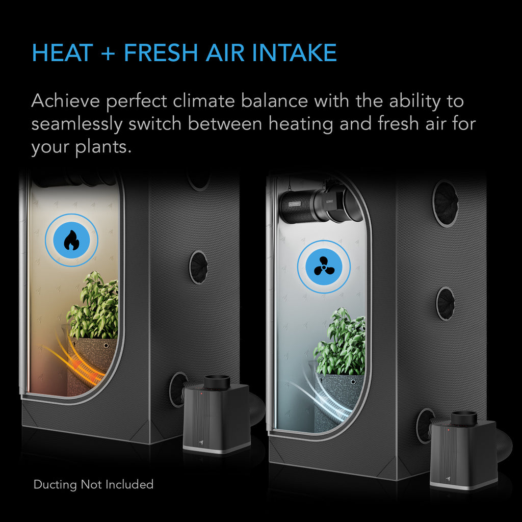 Engineered for versatility, this unit offers both heat and fresh air intake outputs to achieve balanced environmental control. Dual duct ports allow easy setup in open-loop configurations for fresh air exchange or closed-loop systems for maximum heat efficiency. Whether you’re optimizing for optimal heat retention or airflow renewal, this modular design provides flexible, precise control over your grow space. Ducting not included.