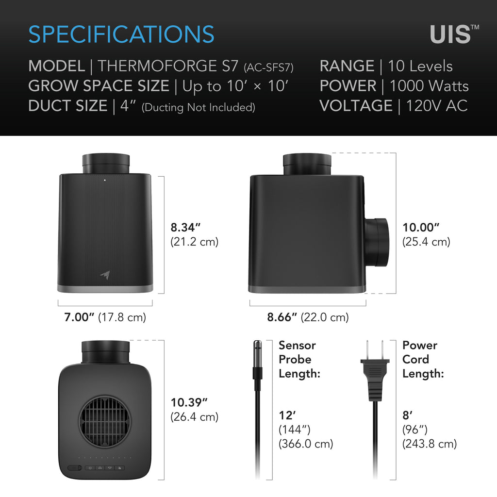 Experience complete environmental precision with this powerful 1000W heater, engineered to optimize conditions for every stage of plant growth. Its advanced PTC heating system provides fine-tuned warmth or fresh air intake to maintain balance and consistency in your grow space. This product is ETL-certified with safety features including tip-over alarms, flame-retardant materials, and overheat protection with auto-restart it delivers performance you can trust. When paired with UIS controllers, it connects to the app for intelligent automations, data insights, and remote climate management.