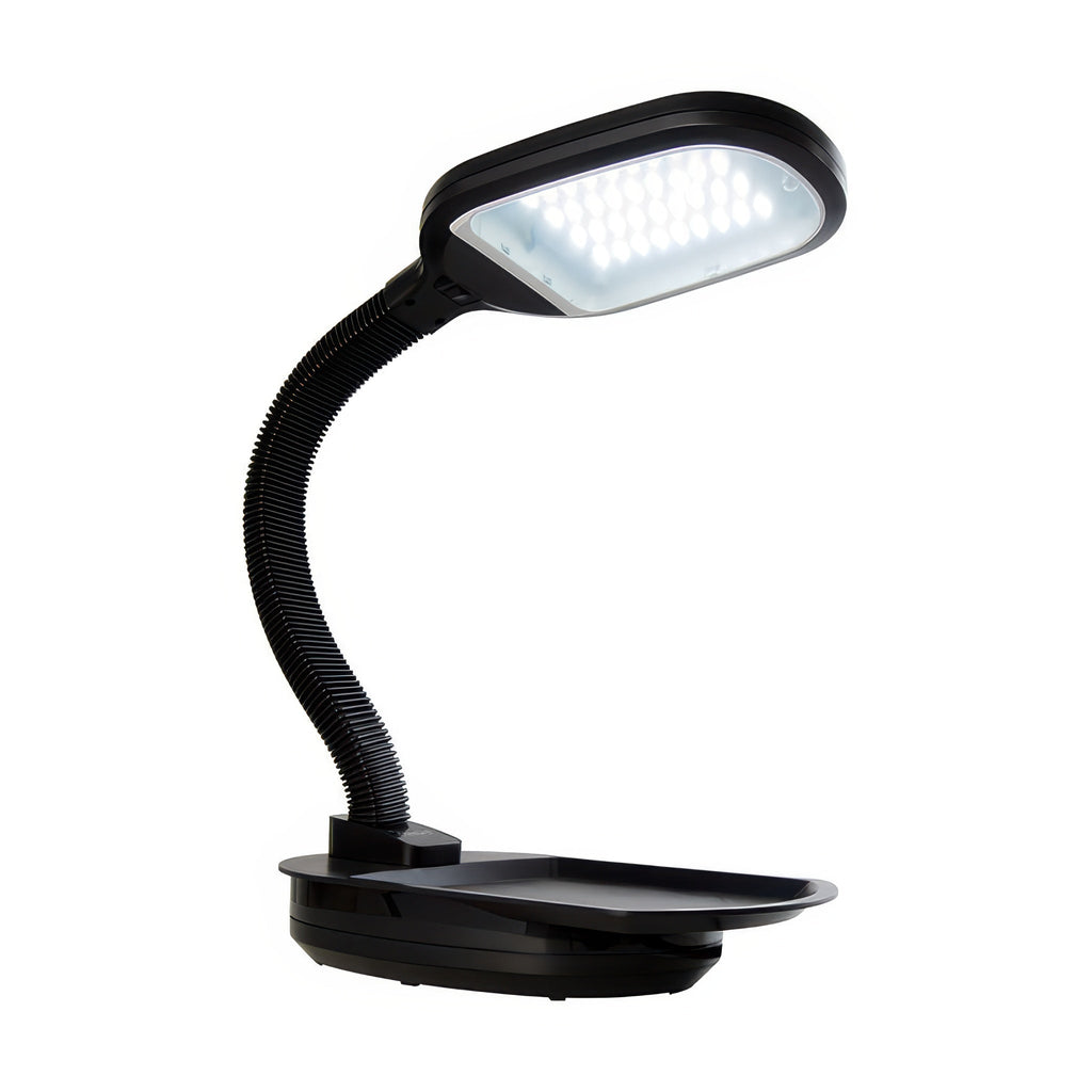 Hydrofarm's desktop plant light offers illumination and versatility for indoor growing. The lamp has a flexible neck and adjustable height with 14" of space from tray to lamp which provides clean and balanced light that works for seed starting, small potted plants or even as a reading lamp. Its full spectrum light enhances the color of ornamental flowering indoor plants.Great for at work or to show off plants at home.