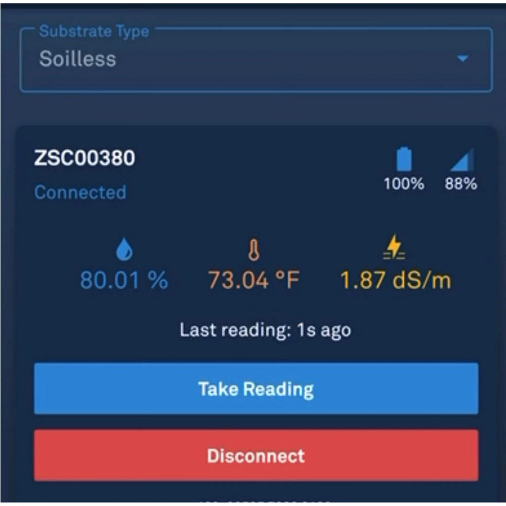 NOTE: The VWC range is dependent on the media the sensor is calibrated to. A custom calibration will accommodate the necessary ranges for most substrates.