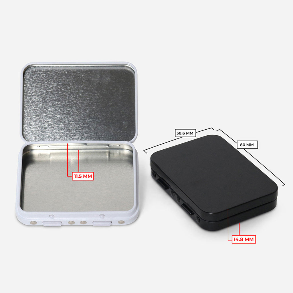 • Safe and Secure - The two-button closure includes two spring-loaded buttons that must be pushed at the same time to access the tin. This, along with the tin's sturdy construction makes it high reusable.