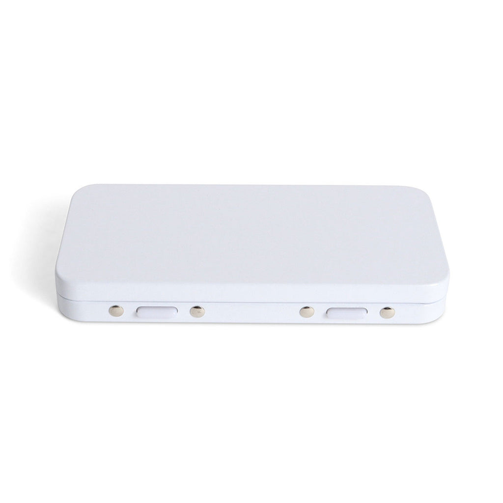 Two buttons means double the security on this glossy multipack pre-roll tin. Featuring a slim, low profile, the Small Pre-Roll Button Tin looks like the satchel with all the money in the movies. Perfect for a high-brow label looking for a tin option. The two spring-loaded security buttons must be pushed at the same time to open just like it takes two keys to launch a missile. It is that secure! The tin is tough but seemingly soft to the touch, so it slides effortlessly in and out of the pocket or purse.