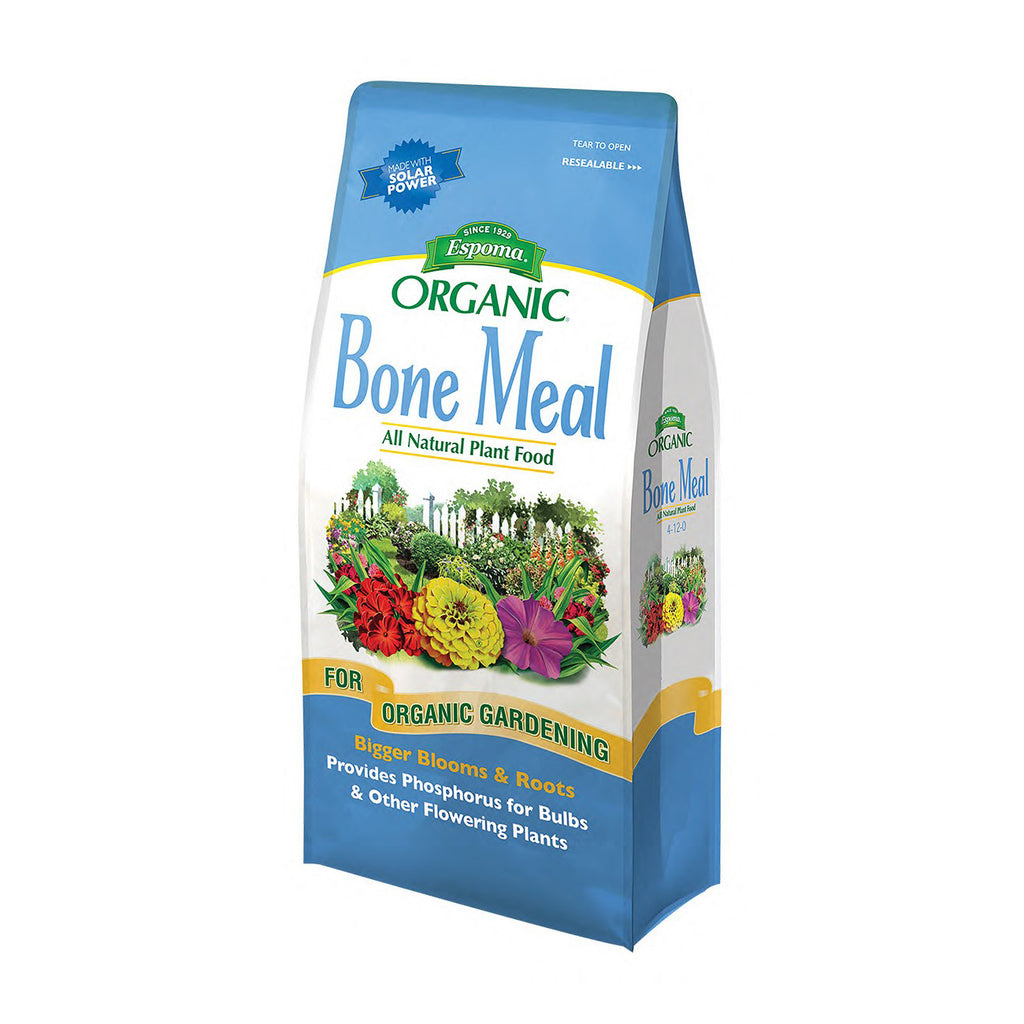 Espoma Organic Bone Meal is an all-natural organic source of nitrogen, phosphorus, & calcium that helps develop sturdy root systems and promotes plant growth. Bone Meal breaks down slowly providing a long-lasting reservoir of these essential plant nutrients. Like all Espoma Organic plant foods, no sludges or fillers are ever used. And because it’s made in our state-of-the-art solar powered manufacturing facility, consistency and quality are guaranteed.