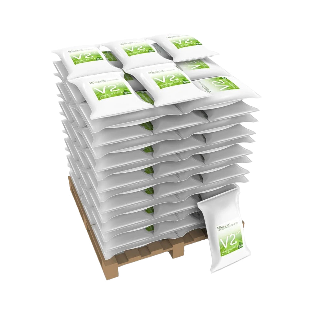FloraFlex has engineered the highest quality, cleanest and most pH stable nutrients on the market. V1 and V2 combine as a two part water soluble formula, providing all of the essential nutrients needed for vigorous plant growth throughout the entire vegetative stage. Use 1-2 teaspoons per 5 gallons of water (1-2 grams per gallon). Add V1 and then V2 to your water source throughout the entire vegetative stage. For optimal results make sure the EC of your water is 0.2-0.3. The EC of your water can range up to, but should not exceed 0.7. At lower dosages V1 and V2 can be used as a base along with other additives.
