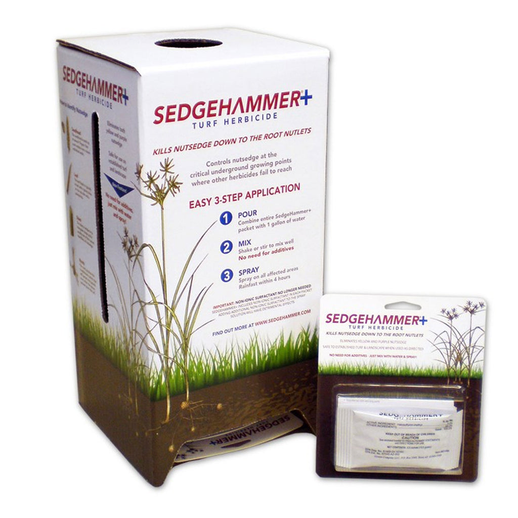 SedgeHammer+ offers a unique product concept in a more convenient packaging size while maintaining the same efficacy of nutsedge control that the market has grown accustom to with the SedgeHammer brand name. SedgeHammer contains a dry, non-ionic surfactant in the formulation, eliminating the need for additional additives when mixing. The built-in surfactant will reduce confusion for the consumer and ensure great results when treating for nutsedge.