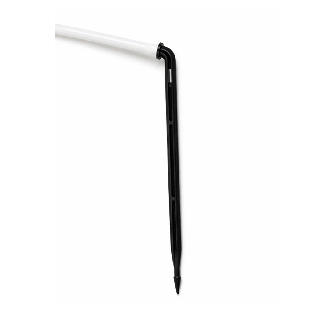 Each low-profile manifold splits a single inlet into four independent outlets. Every outlet comes pre-attached with 36 inches of high-quality 1/4" drip tubing and a heavy-duty drip stake. Installation is simple: push the manifold onto your main supply line and anchor the stakes into your grow medium. With 25 assemblies per pack, you can set up 100 individual drip points instantly.