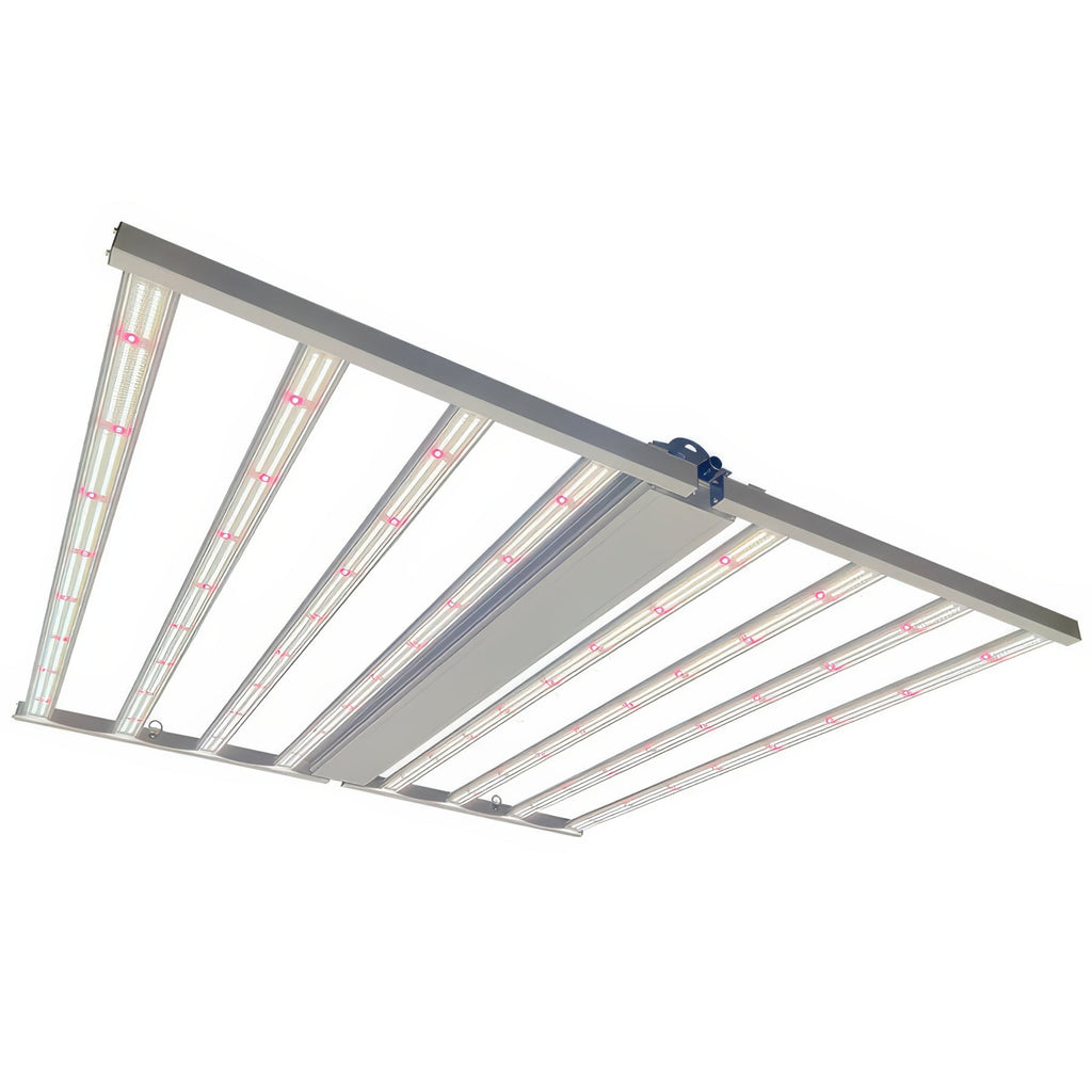 The 720W FULGENT LED 8 bar grow light is a high-performance, low-profile, energy-efficient horticulture LED fixture. Ideal for indoor cultivation over benches, multi-level vertical racks and grow tents. FULGENT LED features built-in drivers, Samsung and OSRAM LEDs for optimum efficiency, reliability and high-end performance. A well-balanced red-to-blue full- spectrum provides deep canopy penetration and high-quality yields for food, and floriculture harvests.