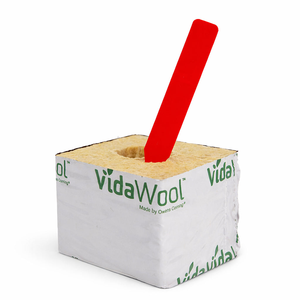 • Insert the label into your substrate — soil, coco, rockwool cubes, plugs, or nursery pots.