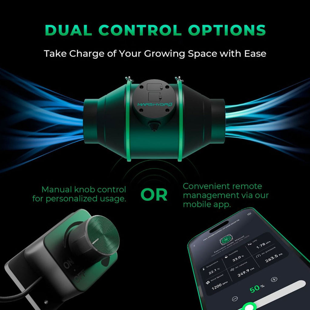 Quiet Powerful Duct Fan & Carbon Filter: With 10 fan speeds and a low noise level of 28 dBA, the 4" inline duct fan provides 10 to 205CFM of airflow, enough to cool and circulate the entire grow tent environment. Coupled with an activated carbon filter to eliminate odors and harmful airborne particles, it is easy to create a reliable and healthy ventilation system for your plants.