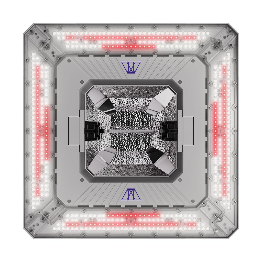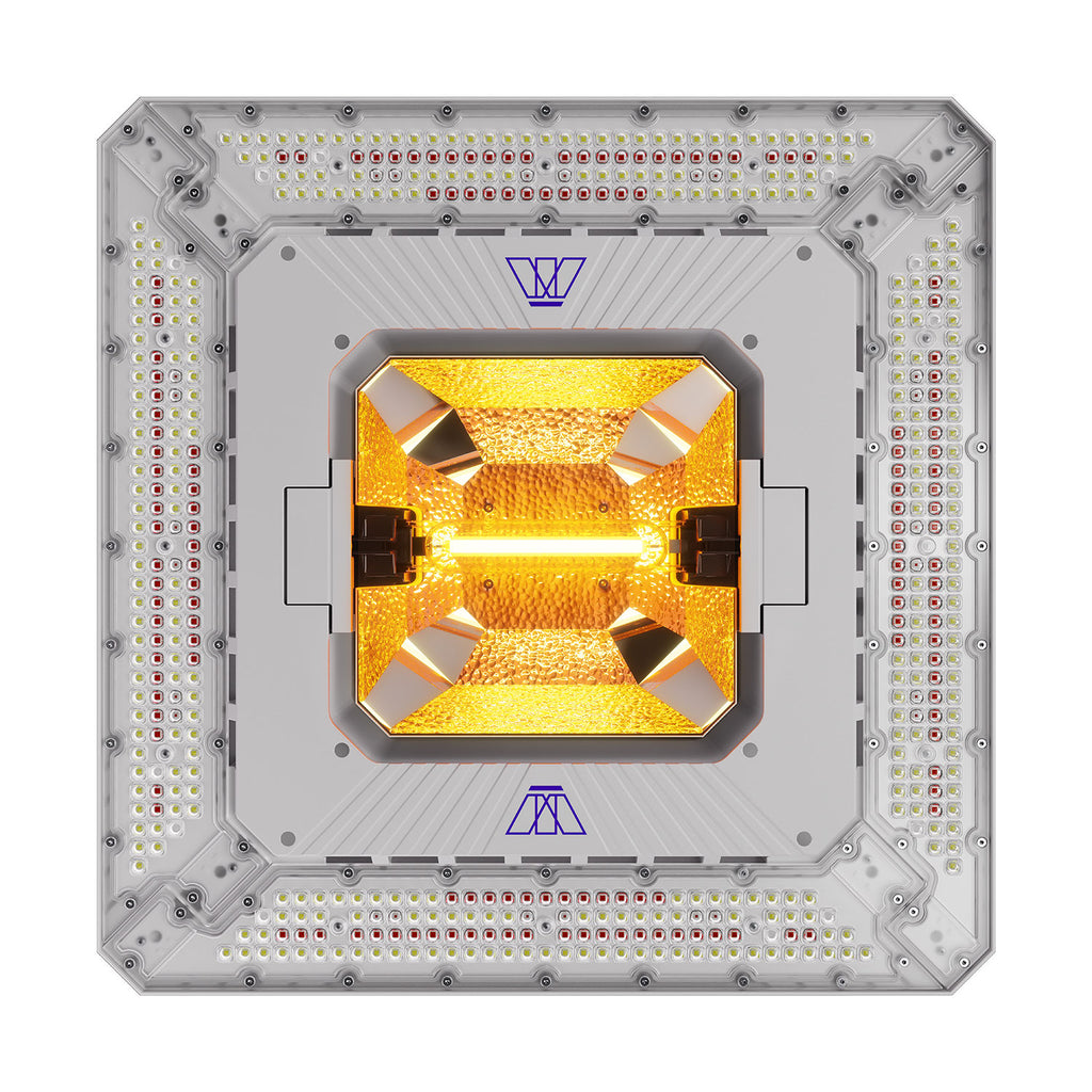 A breakthrough blend of HPS and LED technologies combined into one low profile fixture that brings the power of the sun indoors. Simulating the sun, the warm spectrum of HPS enhances flowering, while LED's targeted wavelengths boost structure, density, and flavor compounds - together they replicate a nature-like environment that creates richer terpenes and fuller flowers.