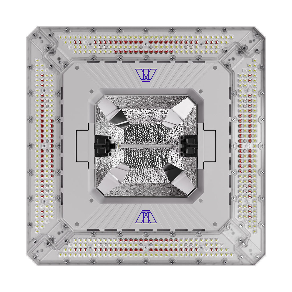 LED micro-lenses and an integrated HPS optical distribution combine to provide uniform PPFD, spectrum and temperature across all canopies, ensuring maximum photosynthesis efficiency for healthier plants and higher yields.