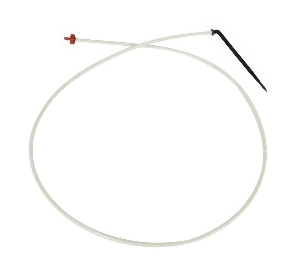 Netafim WPCJ Drip Stake Assembly with a 0.5 GPH pressure-compensating Woodpecker Junior (PCJ) dripper and 48 inches of Super Flex UV White PE tubing. Includes one PCJ dripper, pre-cut tubing, and an angle barbed stake. Operating pressure range: 10 - 45 PSI. CNL check valve closes at 7 PSI. Also available in 18, 24, 30 and 36 inch tubing lengths.