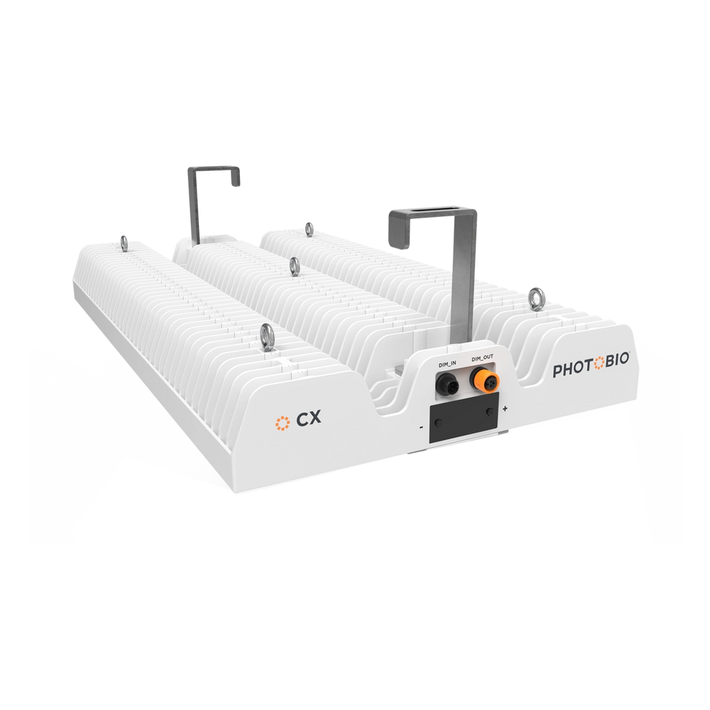 The PHOTOBIO•CX 2125 347-480V S4 is a compact high-performance full spectrum LED fixture with the highest photon output fixture within the PHOTOBIO line-up. This high-efficiency compact top light is designed for horticultural professionals looking to increase performance and yields while minimizing power consumption. The CX is truly a direct 1:1 replacement for 1000W DE fixtures offering higher photon flux, more light to your plant canopy, and better overall distribution vs 1000W DE’s. The 2.6" Slim vertical design is optimal for maximizing vertical real estate, while passive cooling fins keep the operating temperatures low. CX features iLOC Integrated Light Output Control push-button interface allowing the grower to adjust the photon output based on crop maturity. The S4 full spectrum provides more red, far-red, and blue wavelengths to deliver vigorous growth and optimize flower development.