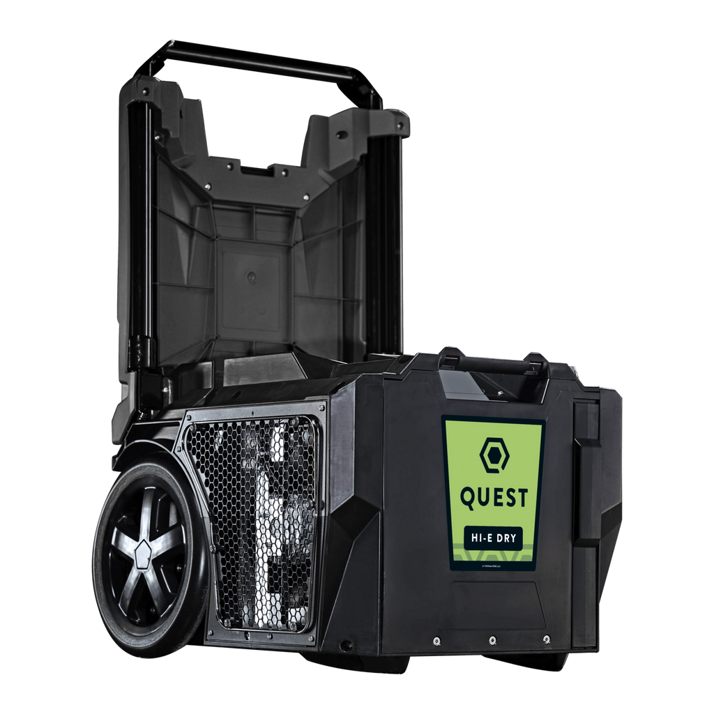 Eliminate mold and mildew, combat rust and corrosion, and increase drying and curing times with Quest’s newest HI-E DRY portable dehumidifier—the next evolution in high-efficiency, mobile moisture removal. Designed for maximum portability, this rugged, efficient dehumidifier doesn’t just perform—it moves with purpose.
