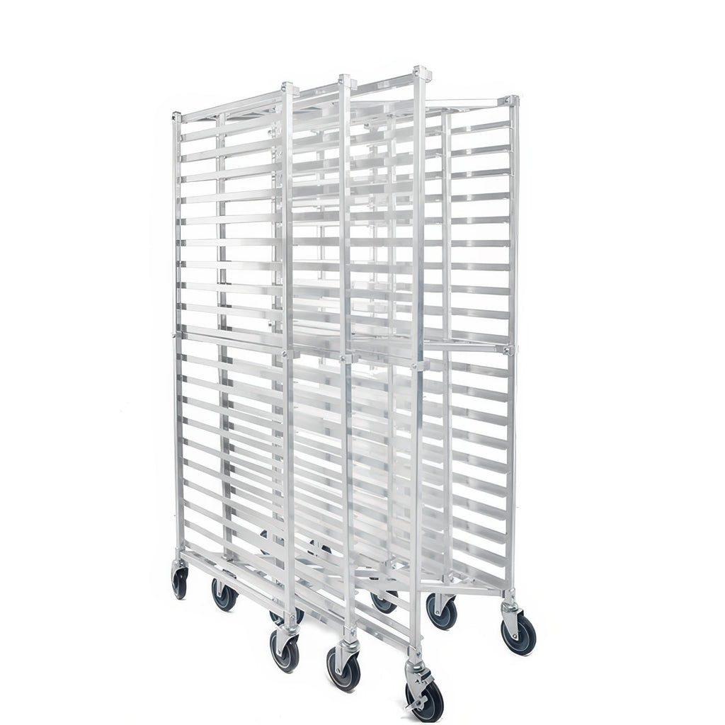 Engineered from clear anodized aluminum, the rack provides strength all while being lightweight for easy transport. Mounted on 4 easy swivel casters allows for omnidirectional maneuverability. When not in use, the racks can be nested to save space.